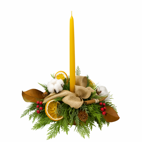 This elegant one-sided arrangement of radiant, is a great way to celebrate this special holiday season. Celebrate the joy and warmth of the holidays with this arrangement. It's the perfect way to add a joyful spirit to your home and spread holiday happiness to all who gather around.
